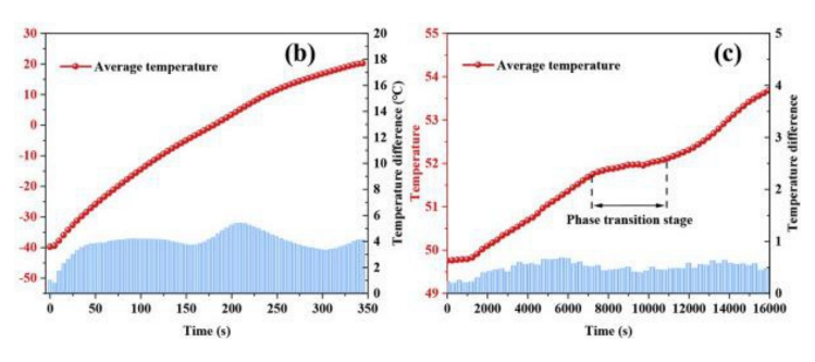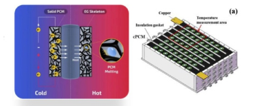 利用相变材料的主动加热以及被动散热,在锂电池组低温启动时,相变材料可调节至合适的电导率,接通直流电,可迅速升温为电池加热,使升温过程的温差较小,当锂电池组正常工作时,电池发热过程中相变材料起散热作用。