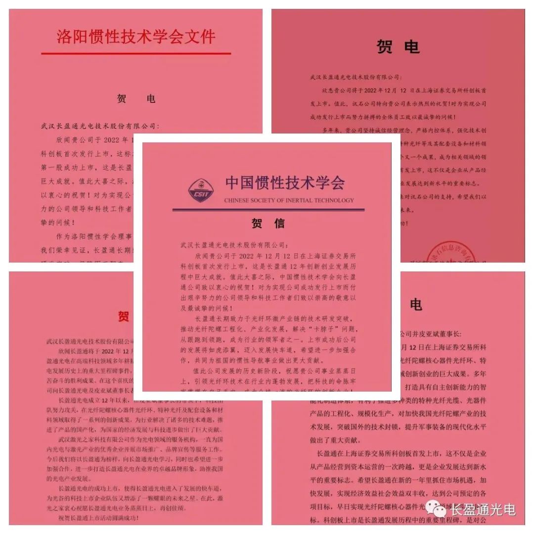 百乐博平台通作为国内光纤环产业的先行者及领军者,其相关产品属于国防工业重要基础元器件和“卡脖子”领域,光纤陀螺环绕环机、陀螺组件等产品被列入国外出口管制清单,公司长期致力于该领域的技术研发突破,保障军工配套,推动光纤陀螺工程化、产业化发展,积极为国防安全事业贡献力量。欣闻百乐博平台通上市,公司客户、行业协会、媒体等各界朋友纷纷发来贺电送上祝福,分享喜悦。